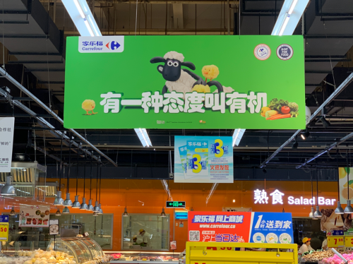 本次活動的另一大亮點是由家樂福中國攜手全球知名的英國國寶IP《小羊肖恩》,聯合打造的家樂福版小羊肖恩主題物料亮相門店,成為了活動上一道亮麗的風景。田園、自然以及健康都是《小羊肖恩》品牌所倡導的核心品牌理念,與此次健康選擇公益科普活動的理念不謀而合。而此次合作的全新小羊肖恩卡通形象,意在凸顯其有機、農場的主題,在本次活動上與家樂福的有機產品,結合。家樂福版的小羊肖恩以一臉逗萌的“農夫”形象在活動中備受眾多觀眾的喜愛。本次跨界合作旨在打造更加生動活潑的有機理念,讓健康不再是說教,讓有機的理念、健康的有機產品能以更有趣的形式傳遞給消費者。在現場,我們看到有數十條關于有機的科普知識正通過跳跳卡、臺卡等形式傳遞給消費者,“ACT FOR FOOD 有機食品”、“有一種態度叫有機”等主題宣傳更隨處可見,整個家樂福金橋店瞬間變成了充滿有機知識的海洋。